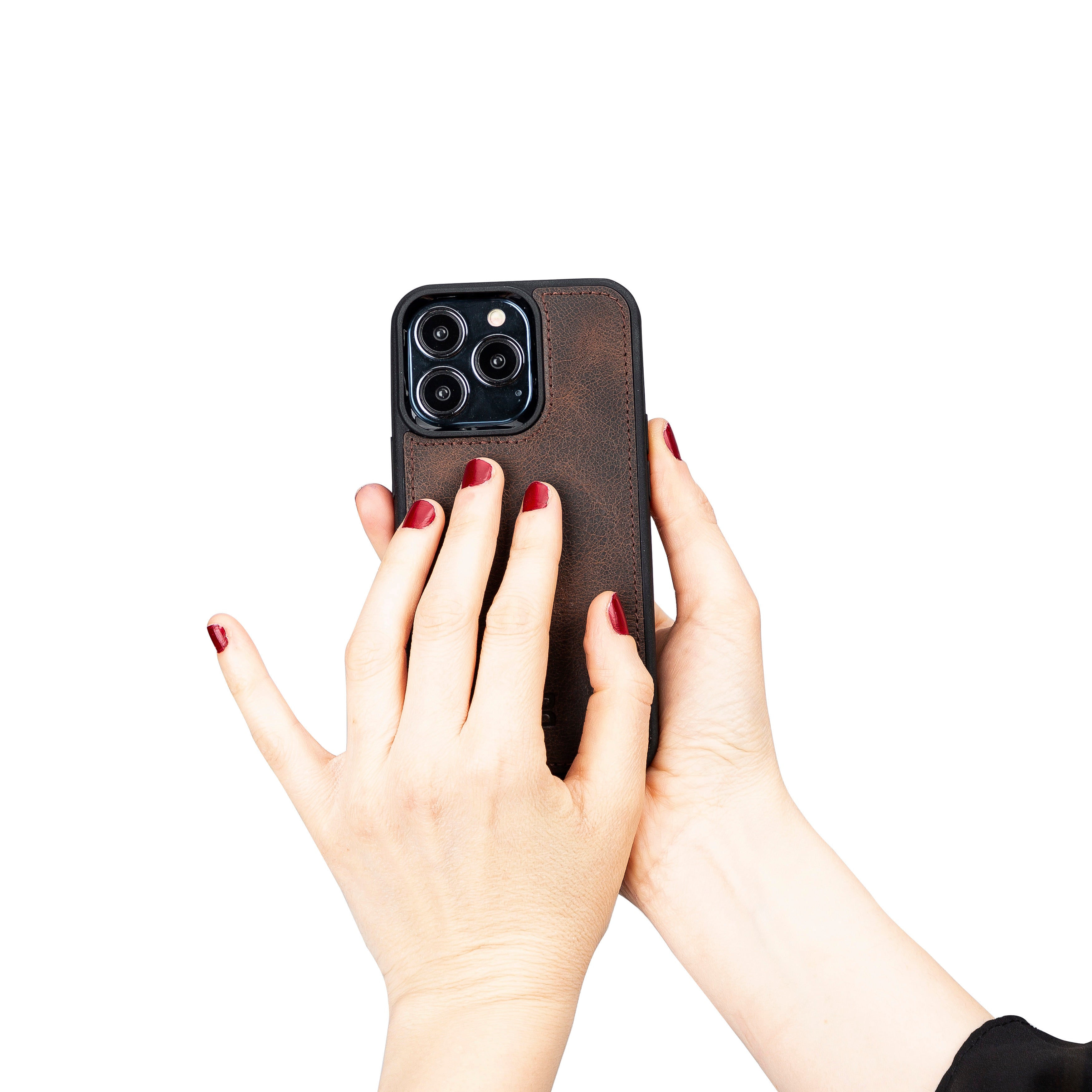 Redéfinissez l'élégance avec la coque arrière en cuir Felix, une protection légère et durable conçue pour toute la gamme iPhone 13 Series. Cet accessoire haut de gamme se distingue par sa finition en cuir véritable pleine fleur et sa compatibilité avec les surfaces magnétiques pour une installation simplifiée. À l'intérieur, une doublure en suède protège votre téléphone, tandis que sa structure flexible à bords surélevés préserve l'écran et les objectifs des rayures.