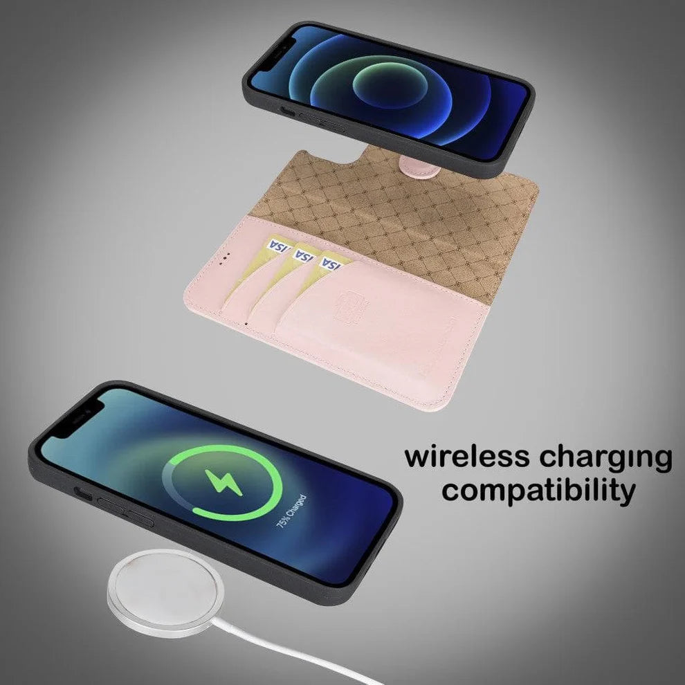 - L'étui portefeuille en cuir pour iPhone 13 Pro Max est compatible avec MagSafe et le chargement sans fil.